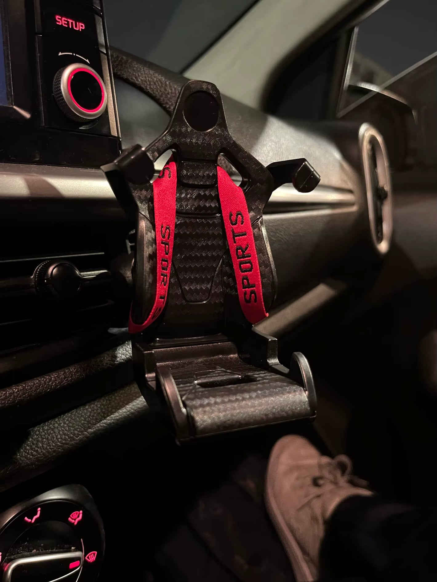Zamień swój nudny uchwyt na nasz Sportowy kubełkowy fotel na telefon i zrób wizualny tuning swojego samochodu